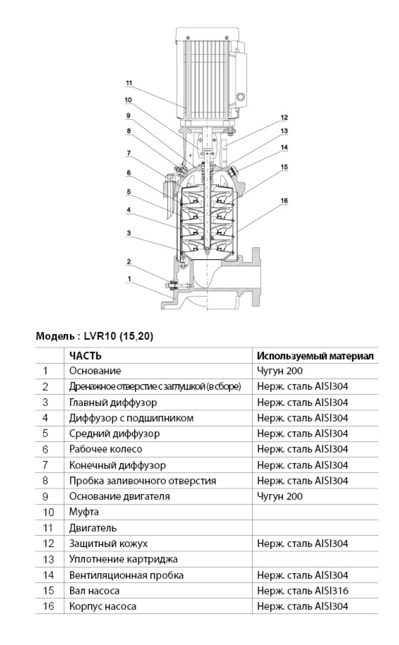 • Насос LEO LVR 15-5 предназначен для перекачки невязких, негорючих, невзрывоопасных, не содержащих твердых включений и волокон жидкостей